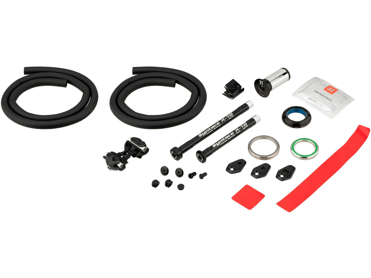Lieferumfang:1 x Rahmen 3T Exploro RaceMax1 x Gabel 3T Fango RaceMax1 x Steuersatz 3T MinMax by Cane Creek1 x Sattelstütze 3T Charlie Team1 x Sattelklammer Ritchey WCS2 x Steckachse 3T1 x Schaltauge 3T
