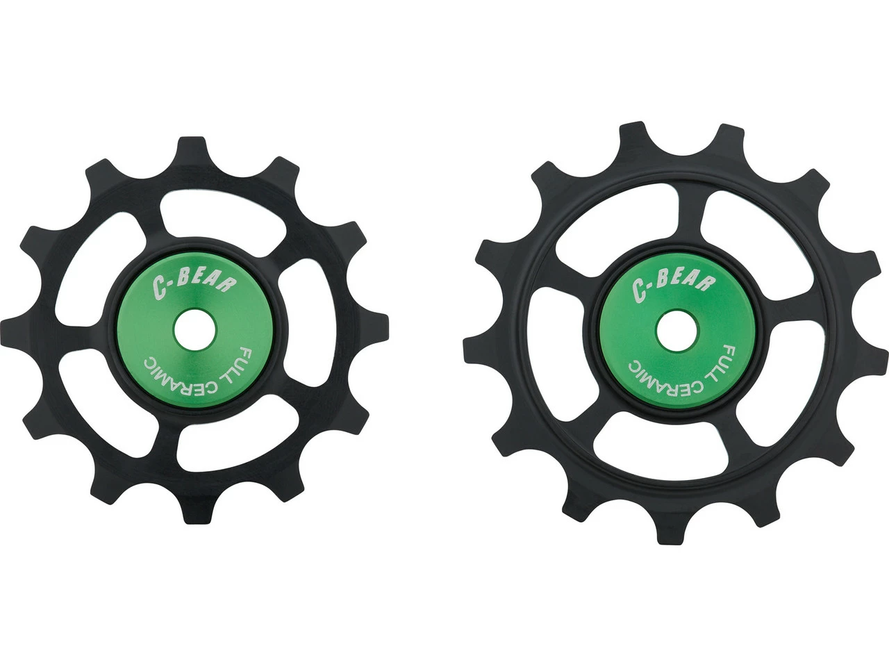 Die C-BEAR OCM Full Ceramic Schalträdchen für das Shimano Dura-Ace R9250 12-fach-Schaltwerk arbeiten mit Keramiklagerkugeln, die in Keramikrinnen laufen. Dabei sind sie größer als die Original-Schaltröllchen. So erhöhst Du die Performance Deines Antriebs deutlich.