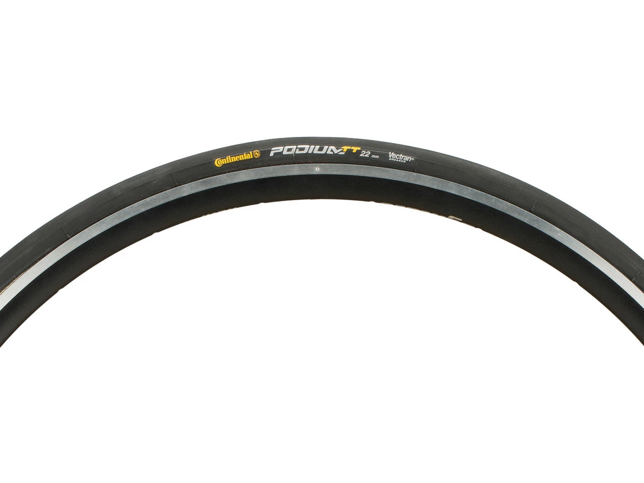 TT steht für TimeTrial! Im Kampf gegen die Uhr werden ganze Rundfahrten entschieden. Grund genug für Continental, dafür einen besonders schnellen Reifen anzubieten. Als Zeitfahr-Schlauchreifen konzipiert, erfreut sich der Podium TT aber auch bei normalen Rennen großer Beliebtheit unter den Pros. Grund ist sein Aufbau: Dank der neuesten Black ChiliCompound ist der in 19 und 22 mm Breite erhältliche Chrono-Spezialist nicht nur superschnell, sein VectranBreaker bietet darüber hinaus überragenden Pannenschutz.