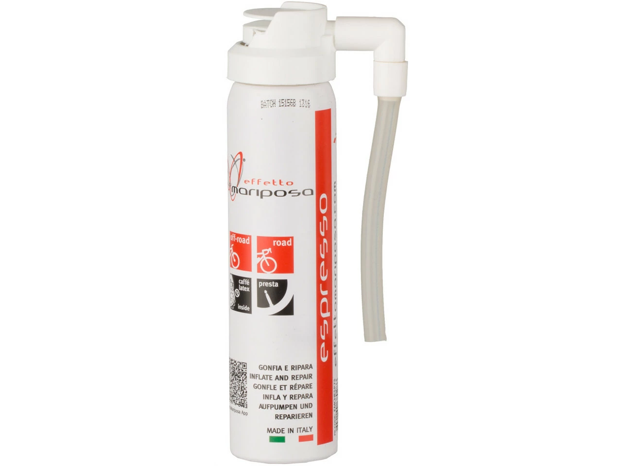 Features:superschnellverschließt Löcher bis zu 1 mm in weniger als einer Minuteperfekte, einfache Handhabungfür alle Reifentypen mit und ohne Schlauchpassend für Presta-Ventileohne Ammoniak100 % reifen- und felgenfreundlichreicht für einen ReifenHaltbarkeit 1 JahrHerstellernummern:75 ml:ESP75125 ml:ESP125Lieferumfang:1 x Pannenspray Effetto Mariposa Espresso