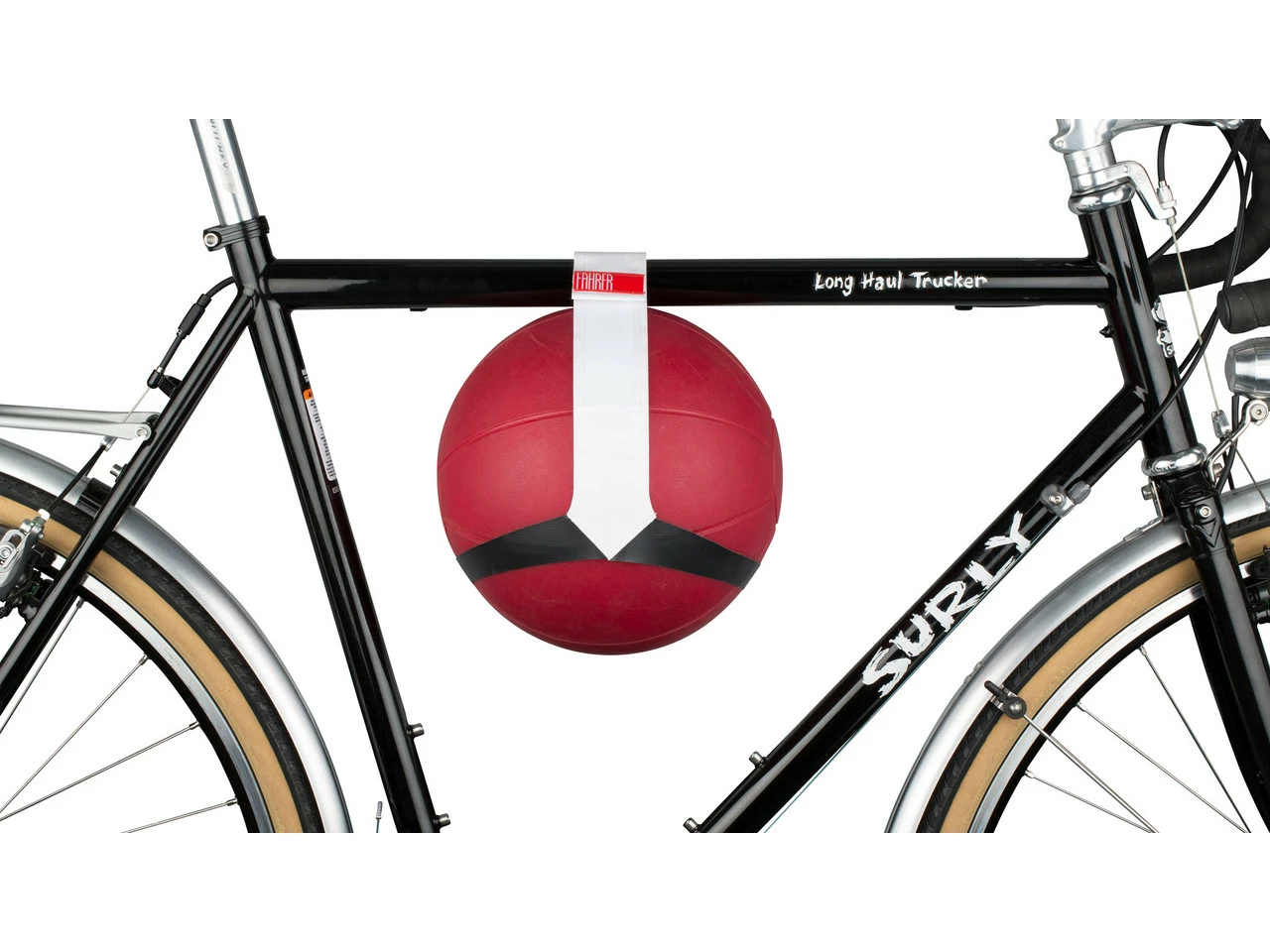 Mit dem Kicker Ballhalter von FAHRER kannst Du einen Fußball, Handball oder Basketball per Klettverschluss am Oberrohr oder an der Sattelstütze festmachen und so problemlos zum Sportplatz transportieren.