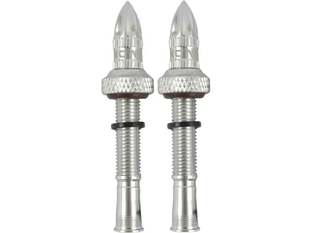 Technische Daten:Material:AluminiumLänge:65 mmFeatures:mit Aluminium Ventilkappe5 verschiedene Gummifüße (je 2 x) zur individuellen Anpassung an Dein FelgeHerstellernummer:black:803870blue:803871red:803875Lieferumfang:2 x Tubelessventil KCNC10 x Ventilgummi