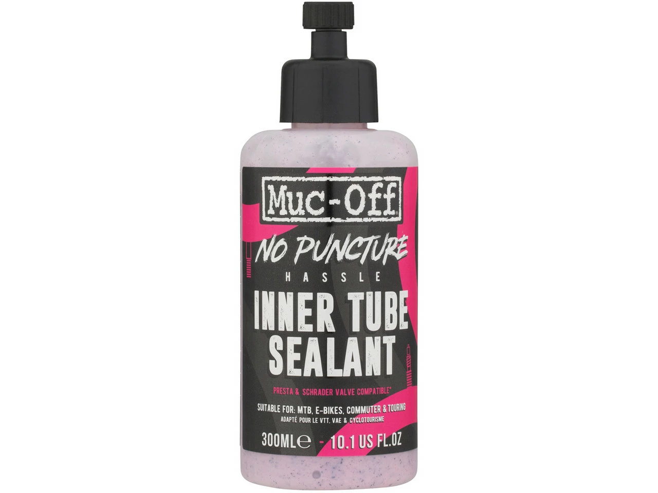 Das No Puncture Hassle Dichtmittel von Muc-Off enthält Mikrofaserstoffmoleküle, die größere Schnitte und Einstiche füllen und in Kombination mit speziellem Latex versiegeln. Es ist leicht, nicht korrosiv und kann mit Wasser abgewaschen werden.