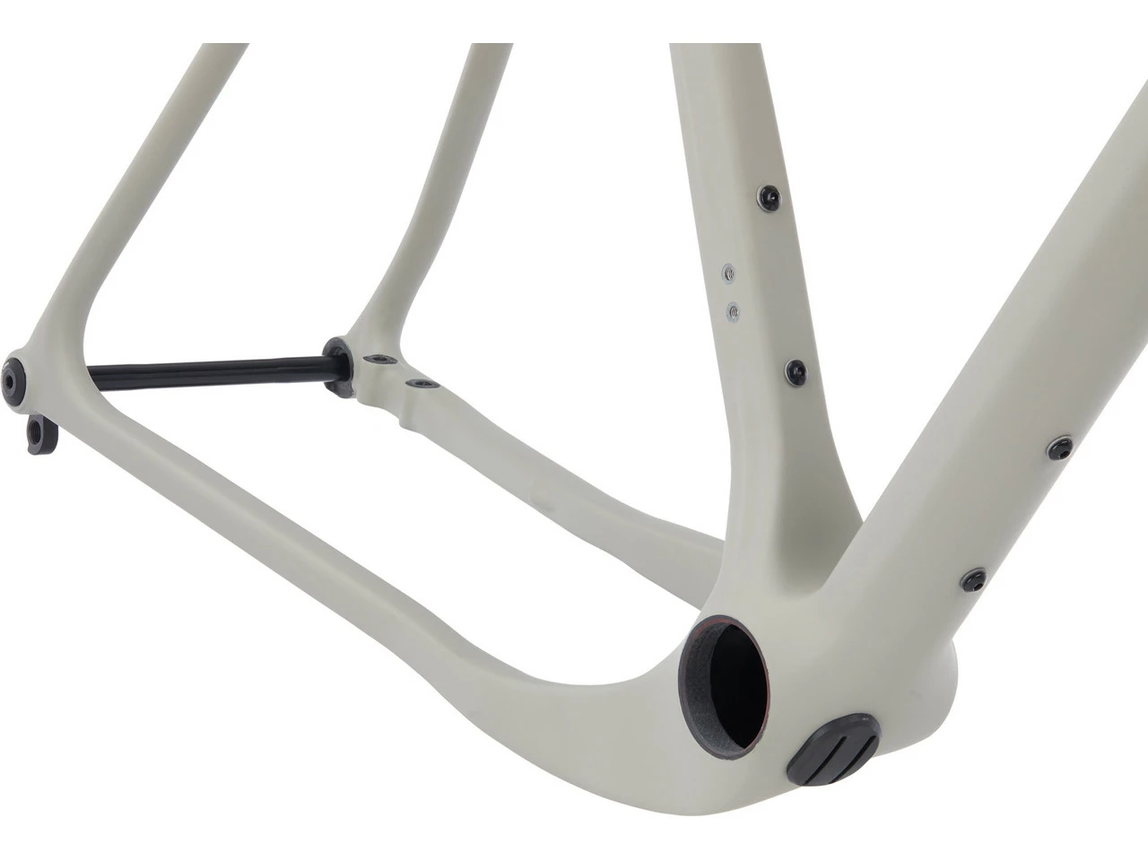 Spezifikationen:Einsatzbereich:GravelLaufradgröße:27,5″ (650B), 28″Rahmengrößen:S, M, L, XLMaterial Rahmen:CarbonMaterial Gabel:CarbonTechnische Daten Rahmen:Einbaubreite Hinterrad:142 mmAchsstandard:12 mm SteckachseSattelstütze (Ø):27,2 mmSteuersatz:IS42/28.6 – IS52/40 (oben zu unten)Innenlagerstandard:BB386 EvoGehäusebreite:86,5 mmBremsaufnahme:Flat MountUmwerferaufnahme:AnlötZugverlegung:intern mechanisch / elektrischFlaschenhalteraufnahmen:3Technische Daten Gabel:Gabelschaft:1 1/8″ – 1,5″ taperedAchssystem:12 x 100 mm SteckachseBremsaufnahme:Flat MountVorlauf:50 mmEinbauhöhe:395 mmMaterial Gabelschaft:CarbonMaterial Gabelbeine:CarbonFreigaben:Bremsscheibengröße max.:160 mm (VR nur 160 mm, für Shimano/SRAM: Bremssattel ohne Adapter mit 30 mm Schrauben verwenden, für Campagnolo: 140 mm Bremssattel mit 30 mm Schrauben verwenden; HR auch 140 mm)Reifengröße max.:27,5 x 2,1″ , 40-622 (700x40C)Kettenblattanzahl:1-fach, 2-fachKettenblattgröße max.:1-fach 50 Z, 1-fach 46 Z (SRAM), 2-fach 50-36 ZFeatures:leichtes, vielseitiges Carbon-Rahmenkit für Gravel und Roadkomplette Kabelverlegung internbis zu 2,1 Zoll ReifenfreiheitGeometrie:S: