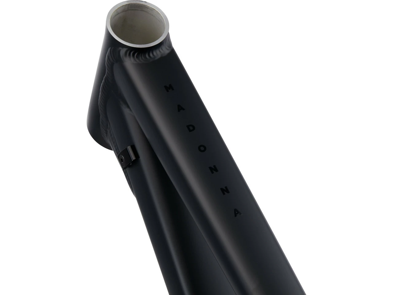 Der RAAW Mountain Bikes Madonna V2.2 Rahmen wird hier durch einen ÖHLINS TTX 2 Air Dämpfer ergänzt und ist eine optimale Basis für ein langlebiges, robustes Enduro-Bike. Beim Luftfederdämpfer kannst Du High- und Low-Speed-Druckstufe einstellen, außerdem bietet er ein sensibles Ansprechverhalten und hohe Kontrolle. Mitgeliefert wird direkt ein passender Acros Steuersatz. Im Vergleich zum Vorgänger wurden beim Madonna V2.2 vor allem das Sitzrohr und damit zusammenhängende Schnittstellen wie Tretlager, Hinterbaugelenke und Dämpferaufnahme überarbeitet. RAAW haben außerdem ein eigenes Steckachssystem entwickelt, das die Steifigkeit erhöht und das Lockern der Achse während der Fahrt verhindert. Vom Vorgänger übernommen wurden bewährte Eigenschaften, die den Charakter des Bikes ausmachen. Eine Besonderheit ist die Variation von Dämpfer und Rocker: Die 60-mm-Variante (Größen S, M, L) für 60 mm Dämpferhub ist mit dem daraus resultierenden höheren Übersetzungsverhältnis optimal für ein leichteres Fahrergewicht bis 90 kg. Die 65-mm-Variante (Größen L, XL) für 65 mm Dämpferhub eignet sich hingegen am besten für Fahrer ab 90 kg. So haben alle denselben Fahrspaß. Alle Drehpunkte und Endkappen sind abgedichtet, die Dämpferaufnahme ist ebenfalls mit Kugellagern ausgestattet. Die Bremsaufnahme ist ein eigenes Bauteil und erspart Dir zusätzliche Adapter. Mit Inserts kannst Du außerdem die Kettenstrebenlänge nach Deinen Wünschen anpassen. Damit die Wartung leichter fällt, werden alle Züge außen verlegt. Mit dem Madonna V2.2 kommst Du nicht nur schwungvoll den Berg herunter, auch bergauf zeigt es gute Klettereigenschaften. Die ausbalancierte Geometrie ermöglicht eine zentrale Sitzposition kombiniert mit Laufruhe und Berechenbarkeit. Und auch an Deine Ausrüstung ist gedacht: Am Oberrohr befinden sich zwei Gewinde zur Befestigung von Zubehörtaschen, damit Du auch ohne Rucksack das Wichtigste immer direkt dabei hast.