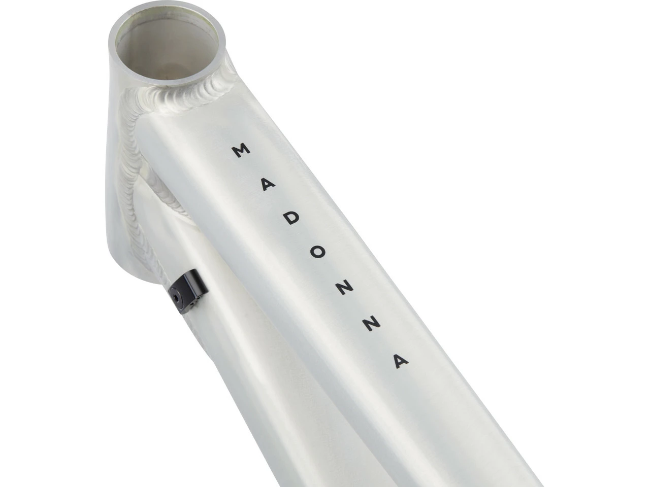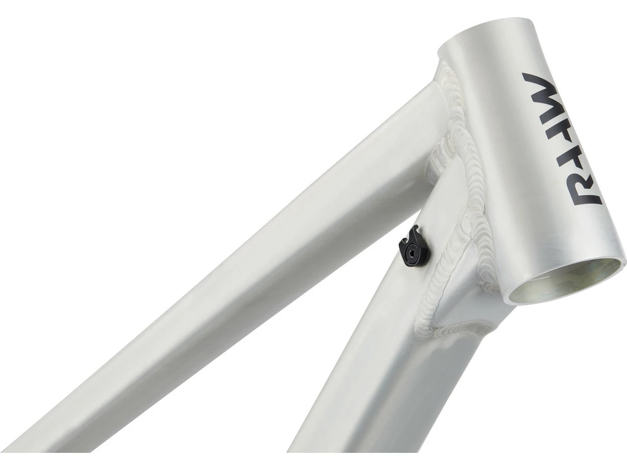 Der RAAW Mountain Bikes Madonna V2.2 Rahmen glänzt mit durchdachten Details, die den Fokus auf Robustheit und Langlebigkeit für den Enduro-Einsatz legen. Mitgeliefert wird auch direkt ein passender Acros Steuersatz. Im Vergleich zum Vorgänger wurden vor allem das Sitzrohr und damit zusammenhängende Schnittstellen wie Tretlager, Hinterbaugelenke und Dämpferaufnahme überarbeitet. RAAW haben außerdem ein eigenes Steckachssystem entwickelt, das die Steifigkeit erhöht und das Lockern der Achse während der Fahrt verhindert. Vom Vorgänger übernommen wurden bewährte Eigenschaften, die den Charakter des Bikes ausmachen. Eine Besonderheit ist die Variation von Dämpfer und Rocker: Die 60-mm-Variante (Größen S, M, L) für 60 mm Dämpferhub ist mit dem daraus resultierenden höheren Übersetzungsverhältnis optimal für ein leichteres Fahrergewicht bis 90 kg. Die 65-mm-Variante (Größen L, XL) für 65 mm Dämpferhub eignet sich hingegen am besten für Fahrer ab 90 kg. So haben alle denselben Fahrspaß. Alle Drehpunkte und Endkappen sind abgedichtet, die Dämpferaufnahme ist ebenfalls mit Kugellagern ausgestattet. Die Bremsaufnahme ist ein eigenes Bauteil und erspart Dir zusätzliche Adapter. Mit Inserts kannst Du außerdem die Kettenstrebenlänge nach Deinen Wünschen anpassen. Damit die Wartung leichter fällt, werden alle Züge außen verlegt. Mit dem Madonna V2.2 kommst Du nicht nur schwungvoll den Berg herunter, auch bergauf zeigt es gute Klettereigenschaften. Die ausbalancierte Geometrie ermöglicht eine zentrale Sitzposition kombiniert mit Laufruhe und Berechenbarkeit. Und auch an Deine Ausrüstung ist gedacht: Am Oberrohr befinden sich zwei Gewinde zur Befestigung von Zubehörtaschen, damit Du auch ohne Rucksack das Wichtigste immer direkt dabei hast.