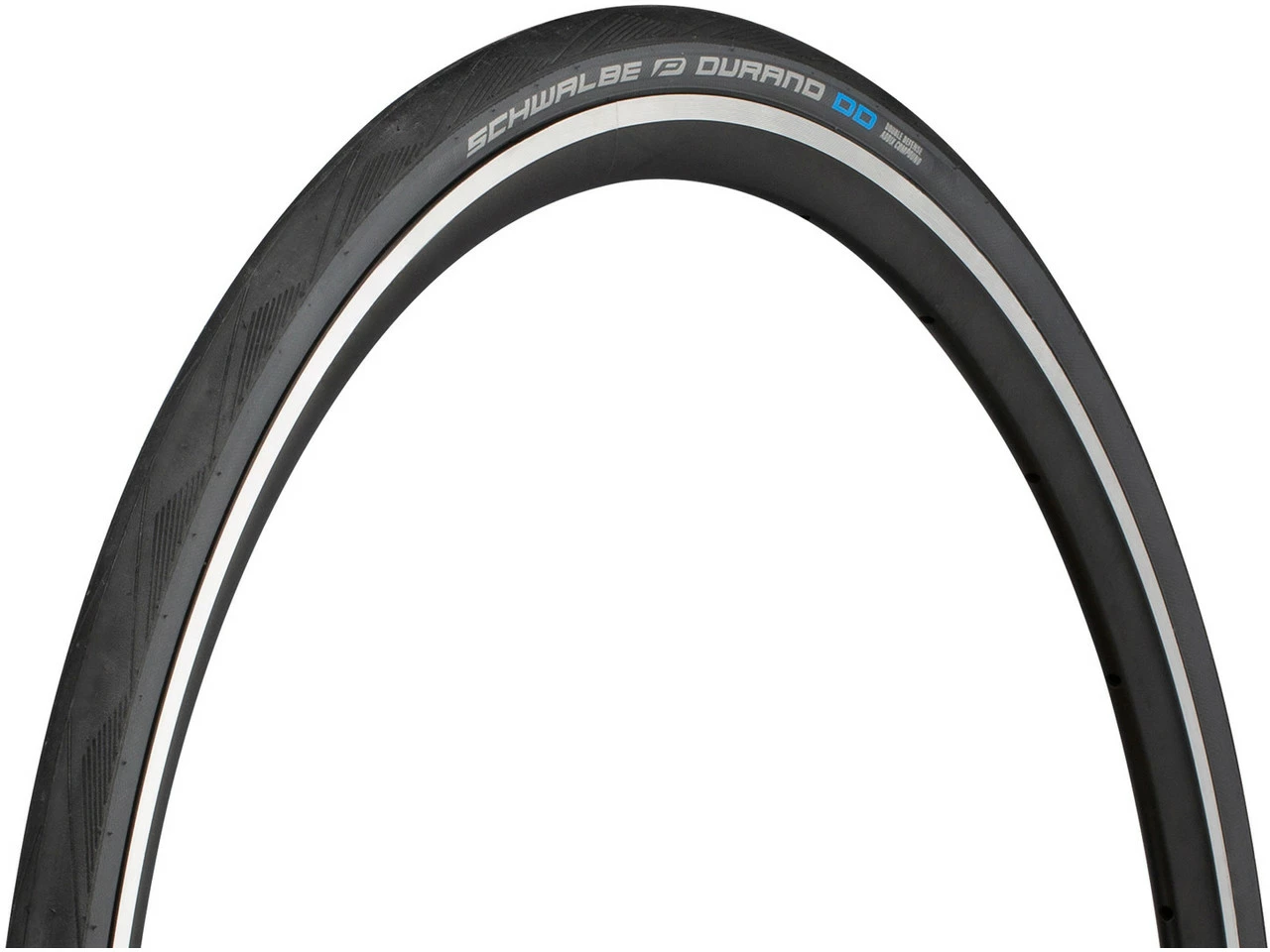 Das DD im Durano DD Performance Faltreifen von Schwalbe steht für Double Defense und der Name ist Programm: Zusätzlich zum RaceGuard Schutzgürtel gibt es einen effektiven Gewebeschutz auf der Seitenwand. Durch sein hohes Schutzniveau und die guten Fahreigenschaften ist Durano DD für Dich eine Empfehlung für den Einsatz auf dem E-Roadbike.