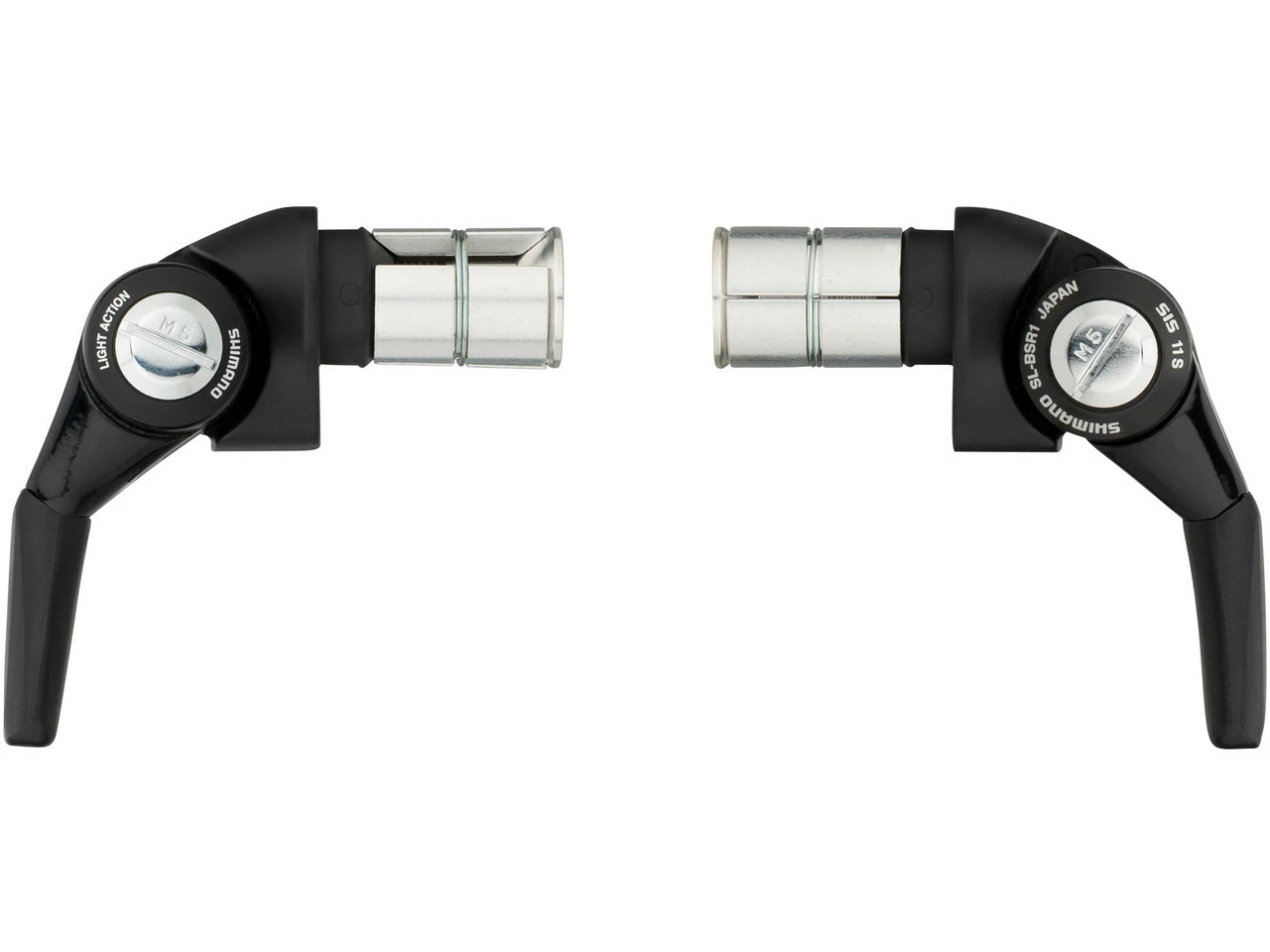 Die Shimano Dura-Ace SL-BSR1 Schalthebel sind Lenkerendschalthebel, die zur 9000er Gruppe gehören. Sie bieten die bewährte Präzision der Shimano Indexschaltung für Zeitfahrräder mit 2×11-fach Antrieb. Die formschönen Hebel wurden aus Aluminium gefertigt und kommen mit einem Klarlack-Finish. Die mitgelieferten Schaltzüge verfügen über die sogen. SIL-TEC Beschichtung, mit der eine glatte Funktion befördert und Verschleiß vorgebeugt wird.