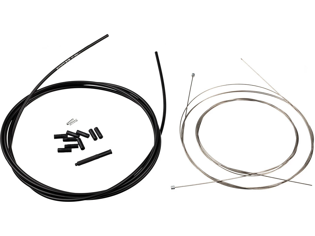 Lieferumfang:1 x Schaltzugaußenhülle Shimano OT-SP411 x Schaltinnenzug Shimano 2100 mm Edelstahl1 x Schaltinnenzug Shimano 1800 mm Edelstahl9 x Außenzugtülle Shimano Kunststoff, gedichtet1 x Außenzugtülle Shimano, gedichtet, gestuft1 x Gummimanschette Shimano2 x Innenzug-Endkappe Shimano