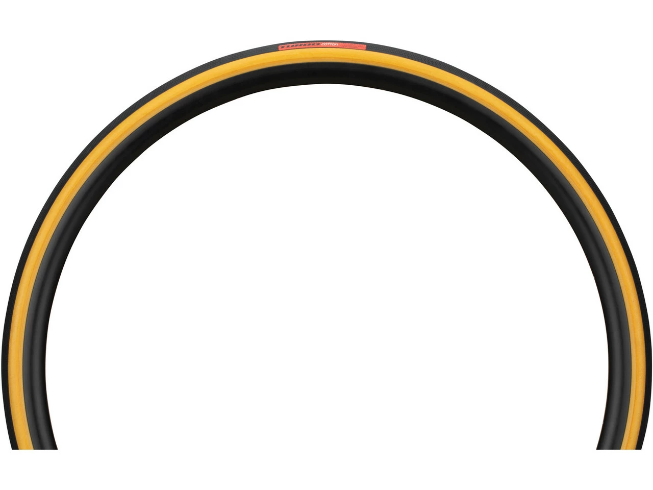 Hochleistungs-Rennradreifen, entwickelt für schwere Klassiker-Rennenschnell, leicht und geschmeidiganpassungsfähige Karkassetransparente Seitenwände, sodass der braune Kern durchschimmert