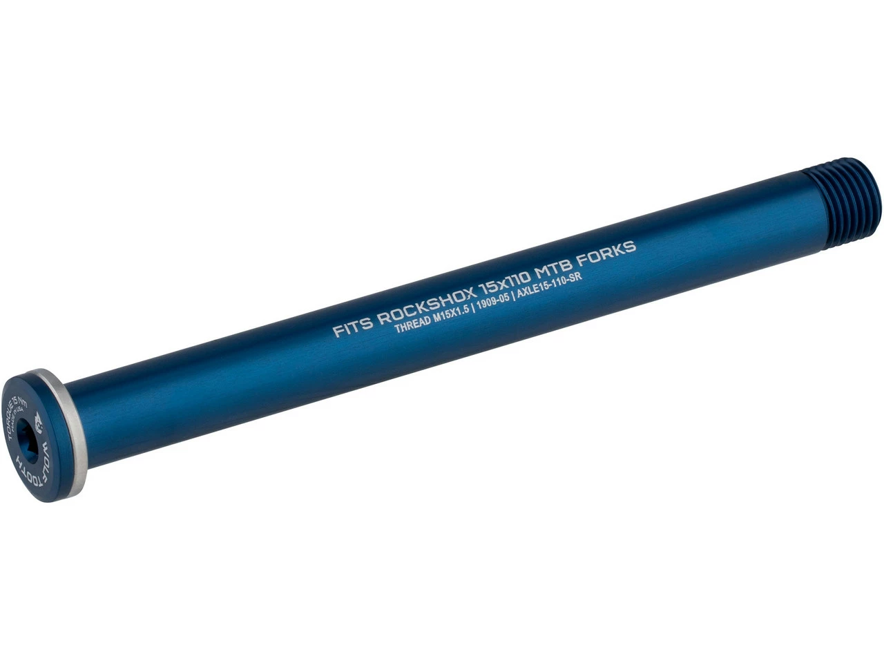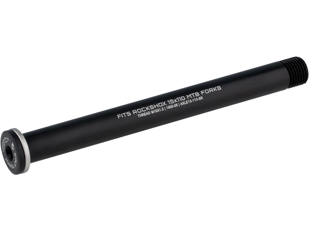 Spezifikationen:Einbaubreite:VR: 110 mmAchsdurchmesser:15 mmTechnische Daten:Verwendung:VR: 15 x 110 mmTyp:SteckachseMaterial Achse:Aluminium (7075-T6)Achslänge:158 mmNenndurchmesser:M15Gewindesteigung:1,5Gewindelänge:12 mmKompatibilität:RockShox 15 mm Federgabeln (Boost)nicht kompatibel mit RS-1 (aufgrund der besonderen Nabenachsen-Konstruktion)Features:mit plattierter Unterlegscheibe aus Stahlfür 6 mm InnensechskantMade in the USA