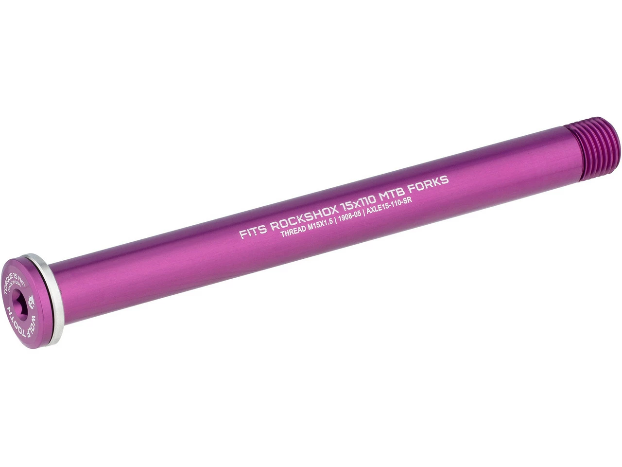 Hinweis des Herstellers:Vor der Installation immer eine kleine Menge Fett auf die Unterlegscheibe und das Gewinde geben.Herstellernummern:black:AXLE15110SRblue:AXLE15110SRBLUred:AXLE15110SRREDpurple:AXLE15110SRPRPgreen:AXLE15110SRGRNorange:AXLE15110SRORGLieferumfang:1 x Steckachse Wolf Tooth Components RockShox Boost