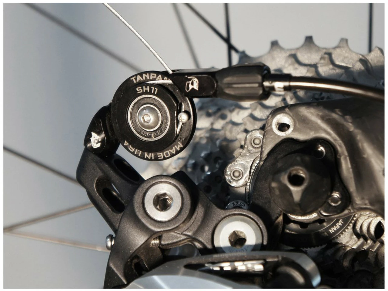 Um diese Vorzüge zu erreichen, vergrößert der Tanpan die Zugweite des Road-Schaltzugs und ermöglicht problemlose Kombination mit MTB-Schaltwerken. Ideal für Fahrer, die ihr Road-, Gravel-, Cyclocross- oder Pendler-Bike wegen der Einfachheit und Gewichtsersparnis auf 1-fach umrüsten wollen – oder für alle, die niedrigere Gänge benötigen, als sie mit der typischen 2-fach Schaltung möglich sind. Im Kombination mit einem gedämpften Shadow+ Schaltwerk garantiert der Tanpan einzigartigen Kettenrückhalt an Shimano Road-Antrieben.